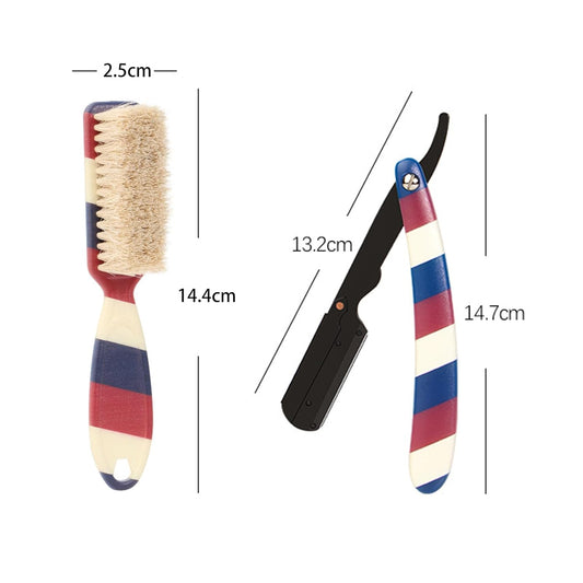 Professional Barber Straight Edge Razor and Barber Brush Set Include 5 Blades, Straight Razor for Men Close Shaving & Hair Cutting (Red/White/Blue)
